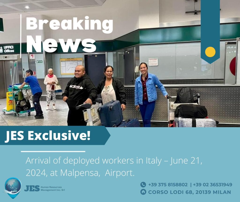 Exciting News from JES Human Resource Management! We are happy to share the arrival of our talented Filipino team members in Milan this month of July🇵🇭🌍 This marks a significant milestone as we continue to connect global opportunities with exceptional Filipino talent. At JES Human Resource Management, we are committed to empowering our team members […]