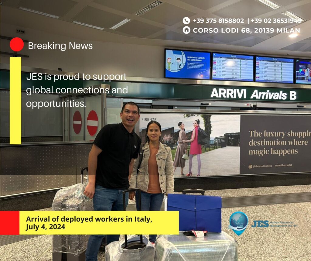 DEPLOYMENT UPDATES‼ We are thrilled to welcome our newly deployed workers who arrived in Italy last September 15 & 17, 2024! Sila ngayon ay bahagi na ng lumalaking JES Human Resource family, at kami’y proud na maging katuwang nila sa bagong yugto ng kanilang karera. To all aspiring OFWs na nangangarap magtrabaho sa Italy at […]